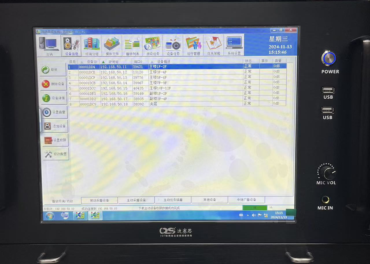 建德市国家电网大楼项目全楼广播由我司提供,每层采用单独的IP网络功放为本层喇叭提供音源,服务器软件为各类终端接入提供数据接口服务,采用嵌入式系统架构,总控室的服务器断开,也不影响各分控室及分区广播使用;可对网络广播终端进行独立分区、IP、音量控制,支持多线程数据处理及多用户在线服务,可7×24小时不间断工作。