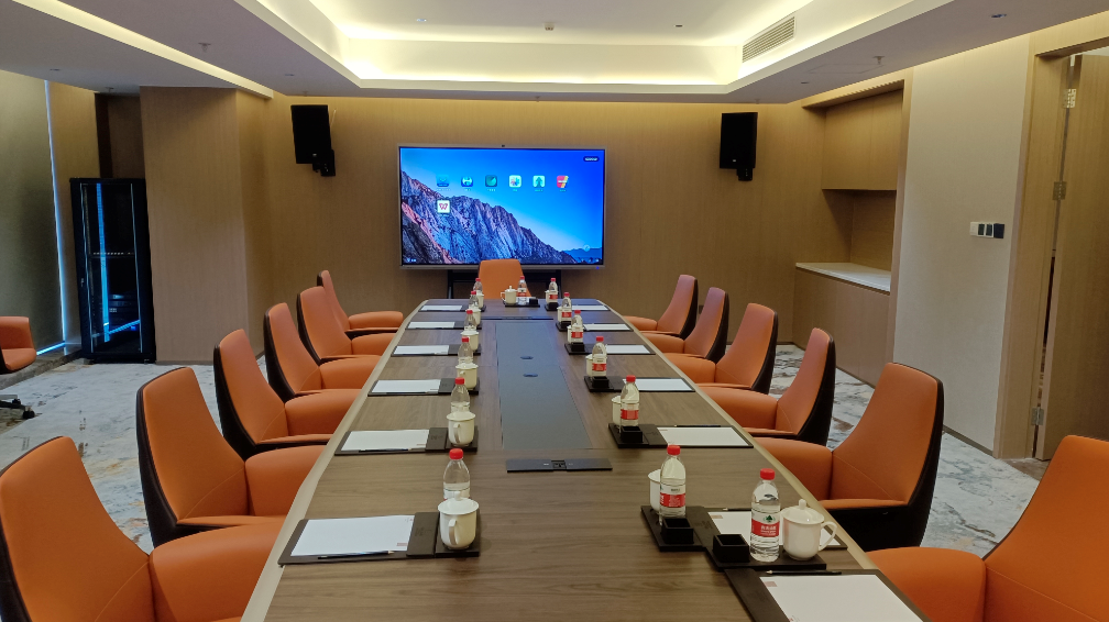 中控系统满足对会议室音视频进行实时切换调度,系统采用无线触摸屏进行操作,中控主机和无线触屏根据会议室时间使用情况,编辑运行控制程序,下载到中控主机和无线触摸屏进行控制运行,在无线触摸屏的控制下,达到音视频切换实时操控,解决繁琐操作,轻松控制会议室室内各种系统受控设备操作。