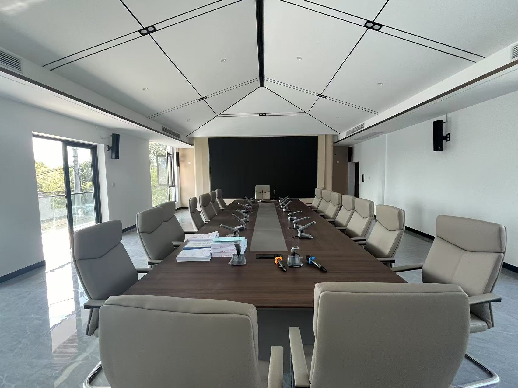 其中,数字会议系统采用手拉手模式,便于安装和维护,解决传统会议室话筒单元发言容易引起啸叫、拾音距离短的问题,既美观又实用。