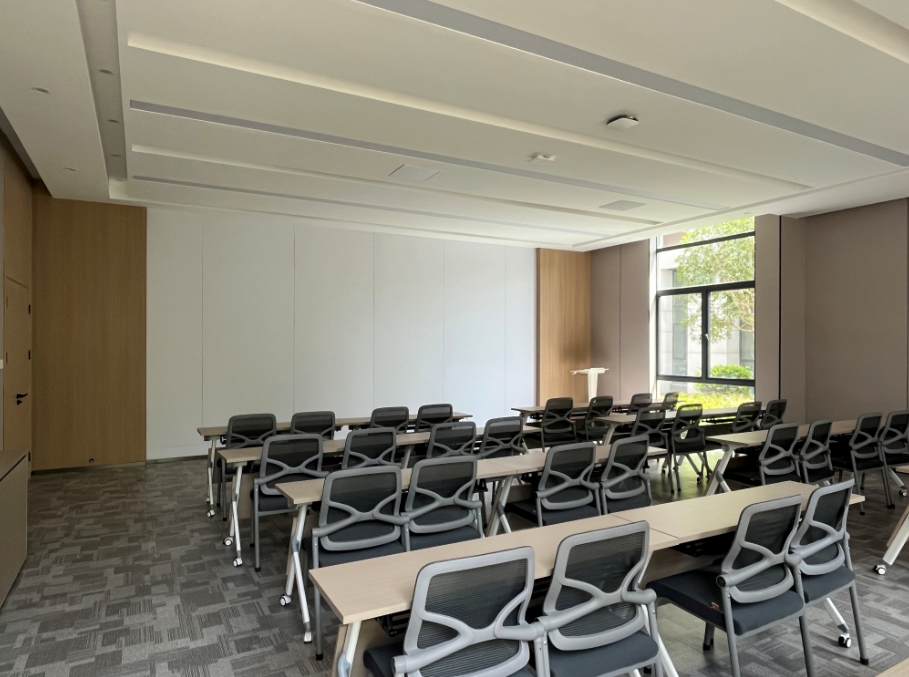 其三层楼日常背景音乐系统由我司打造,采用网络广播,在消控室一键启用广播并做任务,前台可直接呼叫任何区域。搭配我司广播喇叭,外观与装修相符,广播声音还原度高。