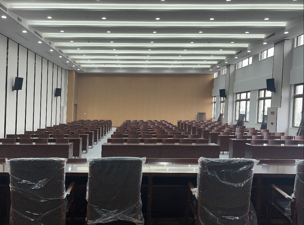 我司配合打造其办公楼内会议室和大报告厅的专业扩声系统。专业扩声系统包括音源拾音系统、音频处理系统、扩声设备和声场组成,主要包括声源和它周围的声环境,把声音转变为电信号的话筒,放大信号并对信号加工的设备、传输线,把信号转变为声信号的扬声器和听众区的声学环境。