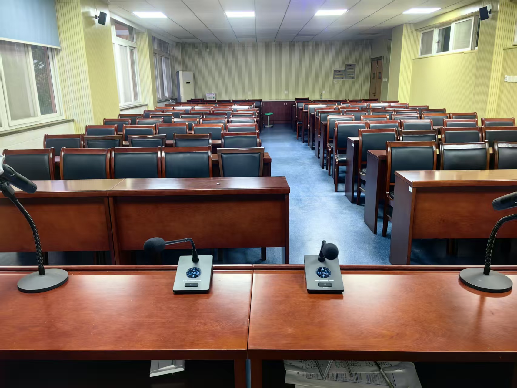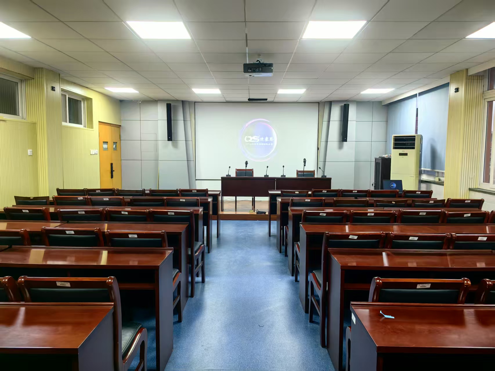 会议室采用DS无线数字会议系统:系统采用无线方式连接,便携安装,而且无需布线,不影响整体的装修布局。可连接会场音响扩声及录音设备,可与DS中控系统结合,缔造完美的会议系统方案。